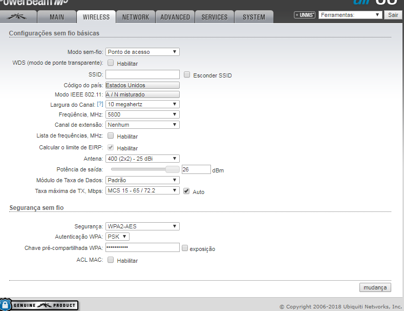 -Reduza a largura do canal para 20Mhz no AP para fins de teste e mantenha se não necessitar de muita banda