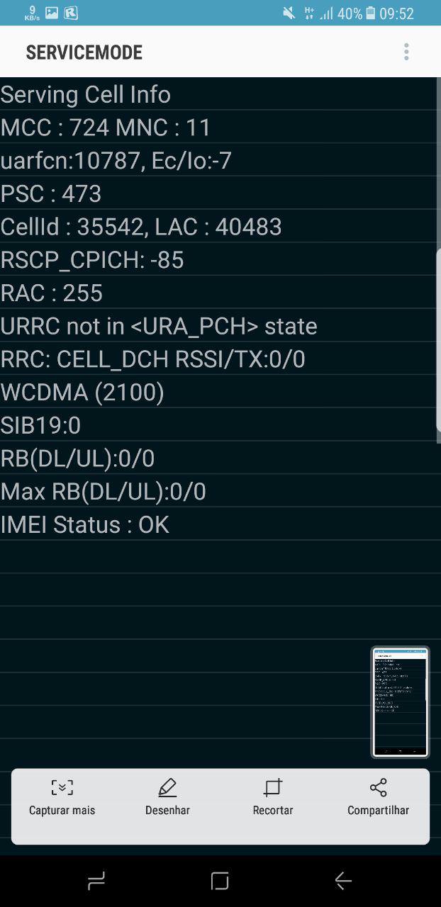 Dica: Vá em uma área externa onde pegue o sinal 4G em seu smartphone Samsung e mude a operação dele para somente 3G. Repita a print do sinal, digite *#0011# e poste aqui para identificação da frequência 3G associada na sua região.