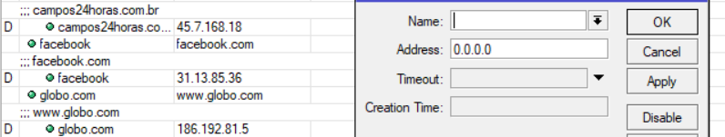 add action=add-dst-to-address-list address-list=Youtube address-list-timeout=1d \