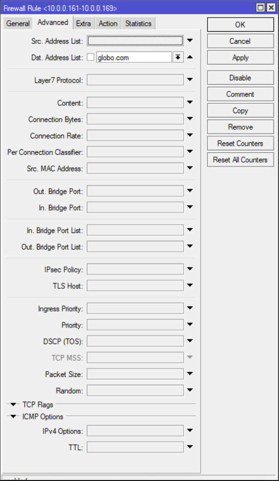 # Content adiciona o trafego que tiver origem a address list block-youtube tentando acessar o endereço googlevideo.com para a Address List Youtube