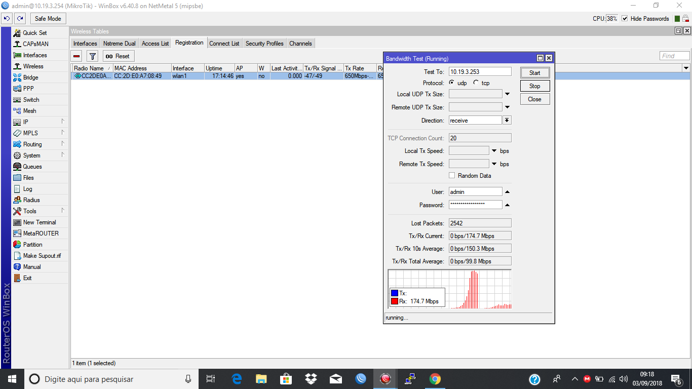 o problema é o seguinte, quanto testo individualmente obtenho esse resultado mas, se for testar todo mas, quando faço o teste da estação do 2ª ptp não consigo passar mais que 20 megas.