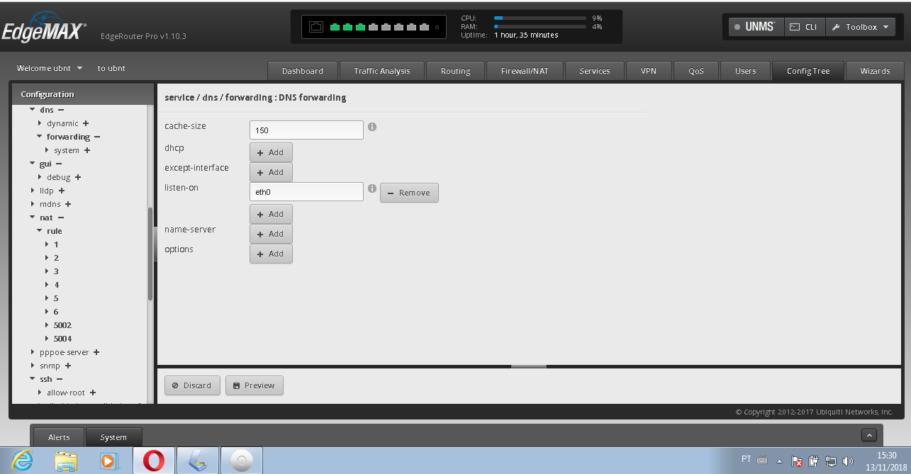 Abaixo seguem as fotos com os detalhes da configuração atual do meu EdgeRouter PRO
