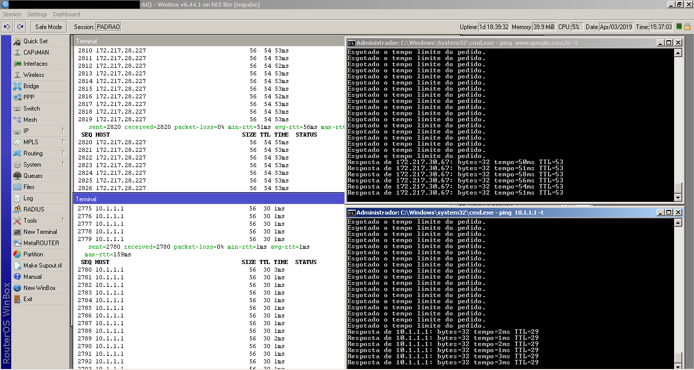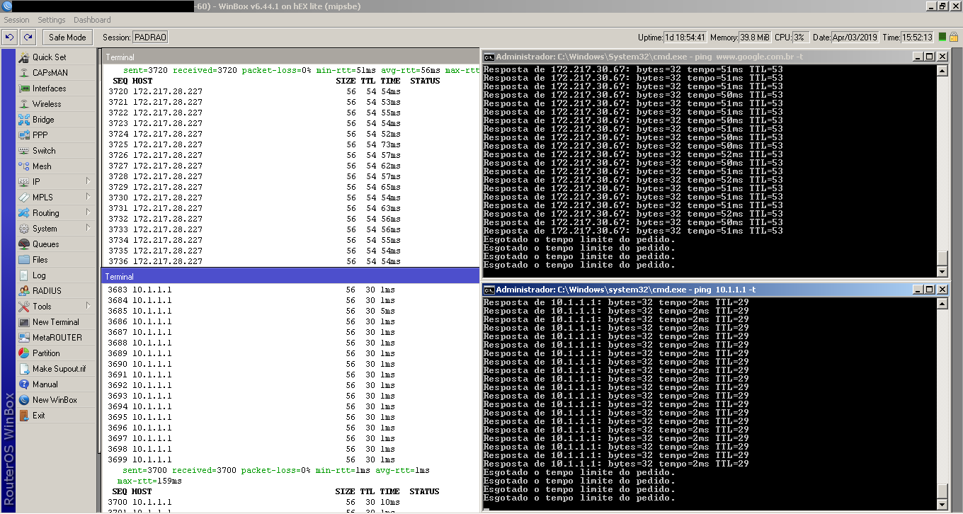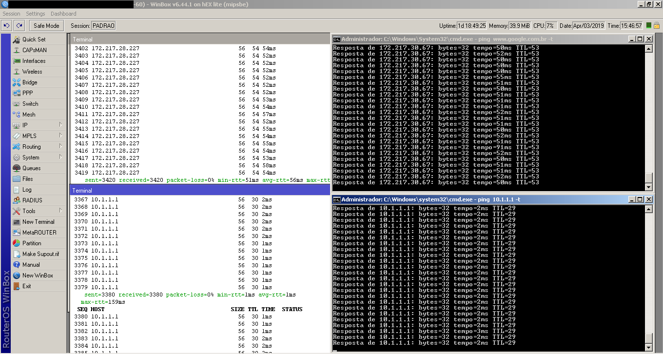 Olá Senhores(a), meu equipamento é uma RB750r2 RouterOS 6.44.1 estou com esse problema que me aflige a dias estou procurando na internet uma solução e não encontro, meu ultimo recursos é pedir ajuda para os universitários, alguma alma caridosa pode me da um horizonte a seguir pois estou totalmente perdido sem rumo nesse problema que faz a rede ficar instável, lenta e com constante quedas de conexão, desde já fico grato pela sua atenção.