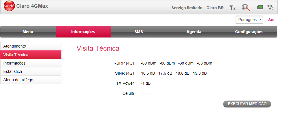 Hoje subi la no telhado e mudei um pouco a posição da antena, conseguindo resultados melhores. Mesmo assim nao consigo conexao. Liguei pra claro e estou esperando retorno da area tecnica.