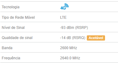 Segue o print Sphreak, entretanto no menu inicial nao apareceu a frequencia nao, entao tirei print la do visita tecnica mesmo. De qualquer forma eu testei todas as frequencias 4g e a 1800 foi a com o melhor resultado (esse do print).