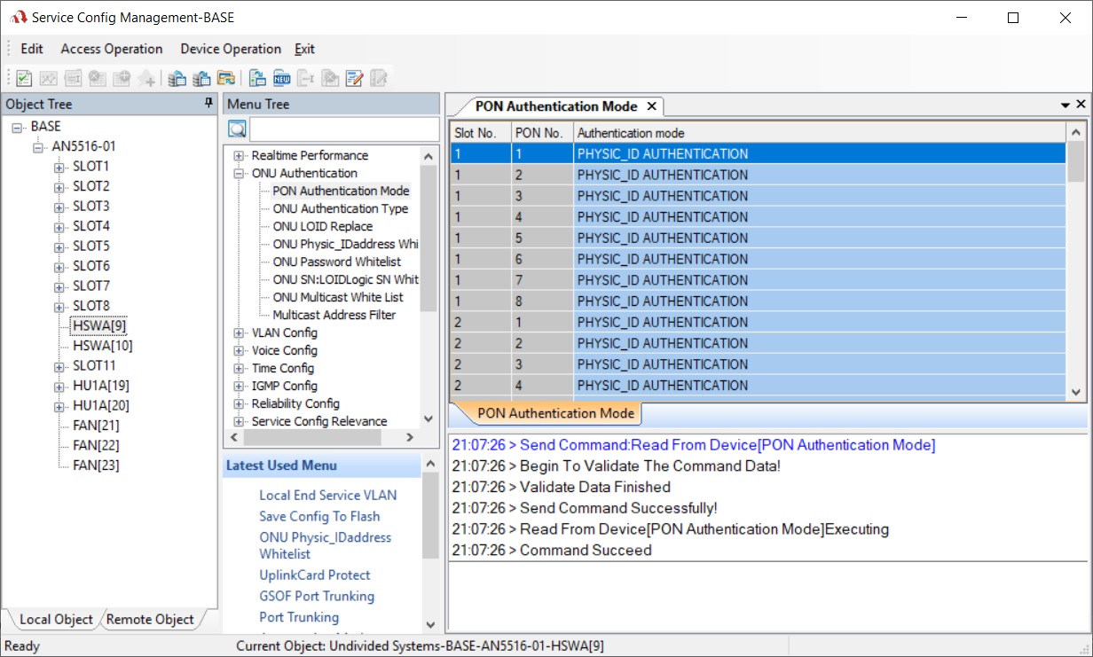 clique com o direito em HSWA (ou Sua placa de gerência) -> ONU Authentication -> PON authentication mode -> selecione Physic ID authentication.