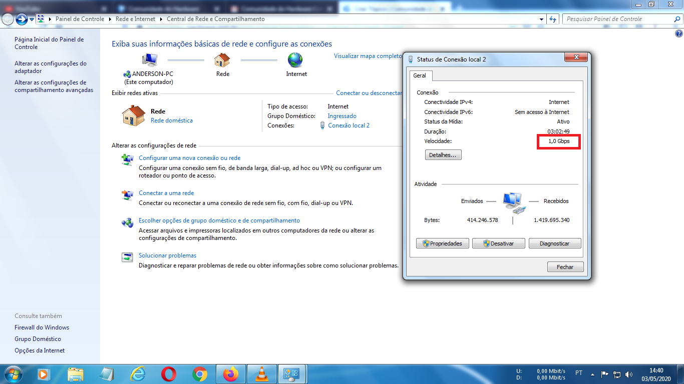 O mais estranho é que quando eu testo a velocidade no mesmo servidor,na mesma pagina de teste tudo igual porem através do meu notebook via cabo UTP cat5e bate os 200mb de Down/Up o problema é somente no desktop