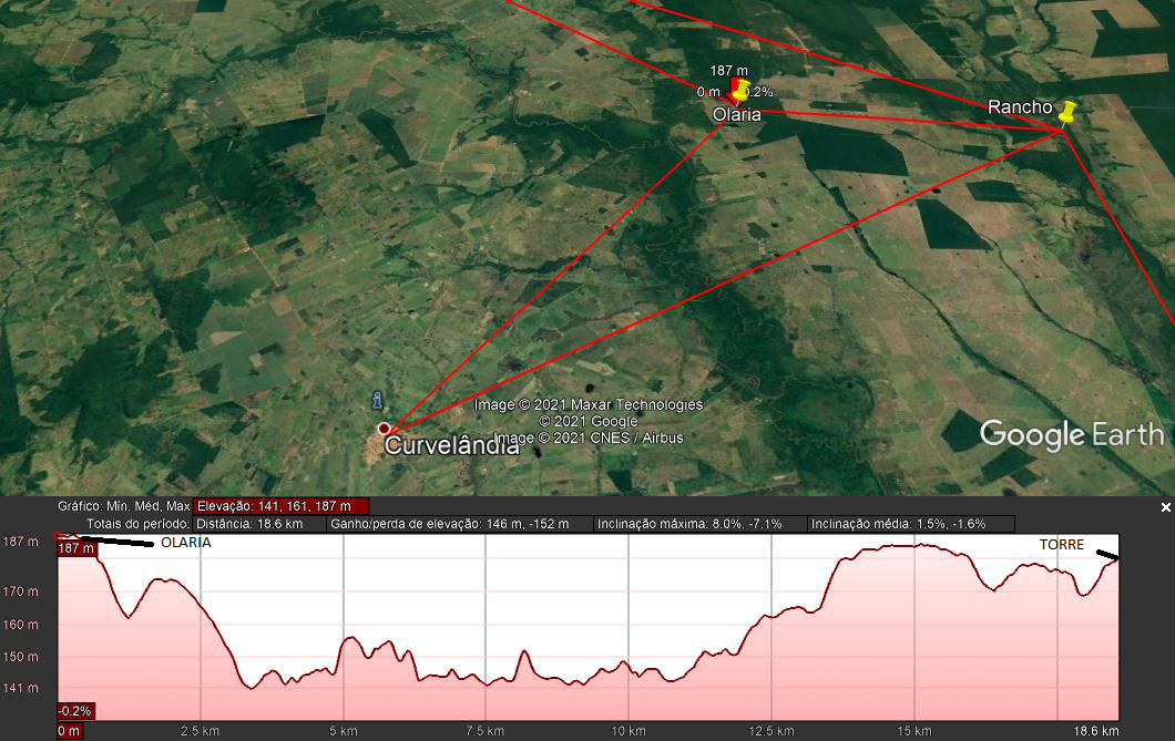 Observe nas imagens anteriores que há uma região avermelhada a direita, do outro lado do rio. Essa região avermelhada é onde o sinal da Vivo reflete no relevo.