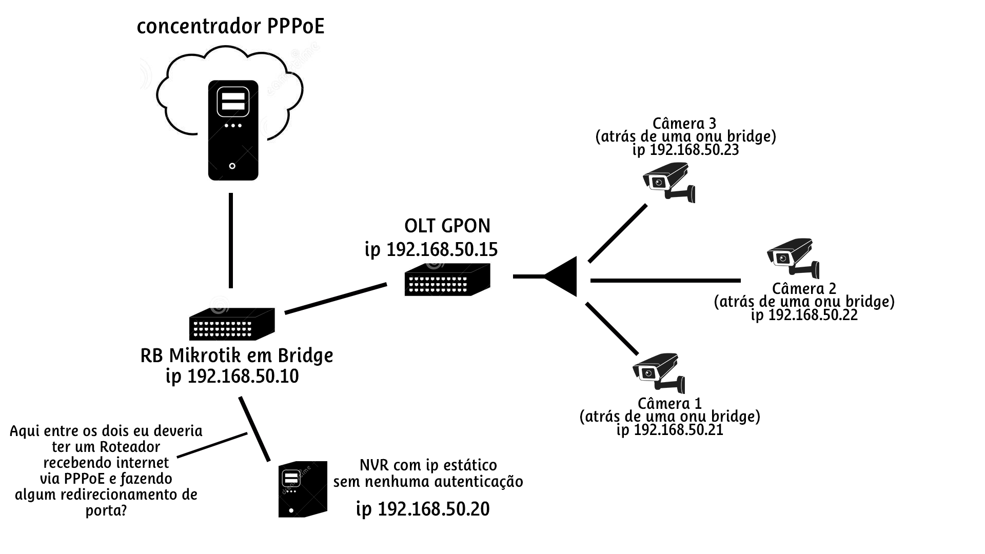 Vocês conhecem alguma forma de meu DVR conserguir enchergar cameras IPs atrás de ONUs na minha rede GPON, de forma que meu DVR tenha internet?