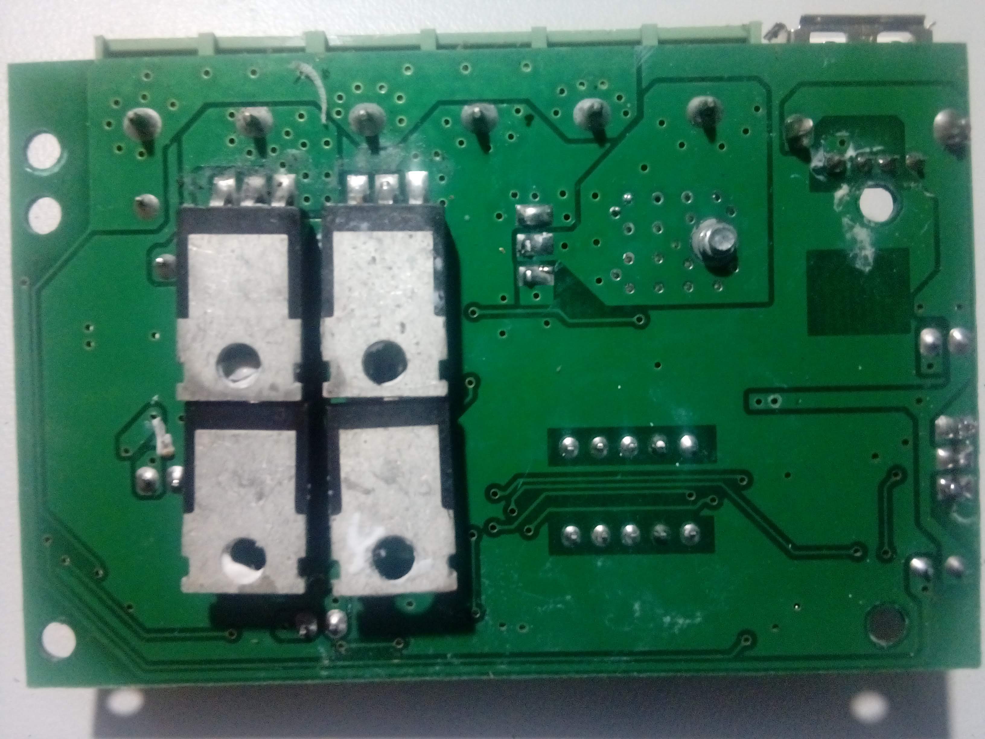 Dentro deles a estrutura básica é a mesma, com 4 mosfets soldados atrás da placa: