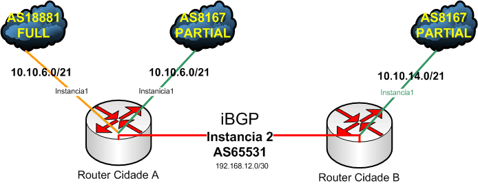 Pessoal para futuras consultas dos parceiros, o cenario abaixo anuncia 1 bloco /20 na Operadora e 2 Blocos /21 no PTT, isso é foi solicitado pelo PTT porque o anuncio de menor bloco tem preferencia,