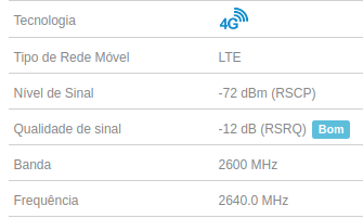 Outro fato interessante, é que em 2600 MHz, o nível de sinal era menor do que em 700MHz. Porém a taxa de Down/Up era muito melhor em 2600 Mhz.