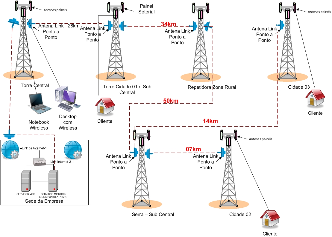 No link ponto a ponto da da torre central pra Sub Central 01 tem 28km com os equipamentos: