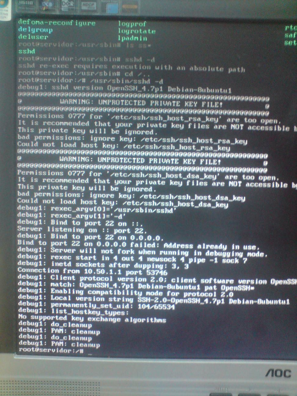 da uma olhada nas fotos 3 e 4 o sshd -d deu a mesma coisa!!