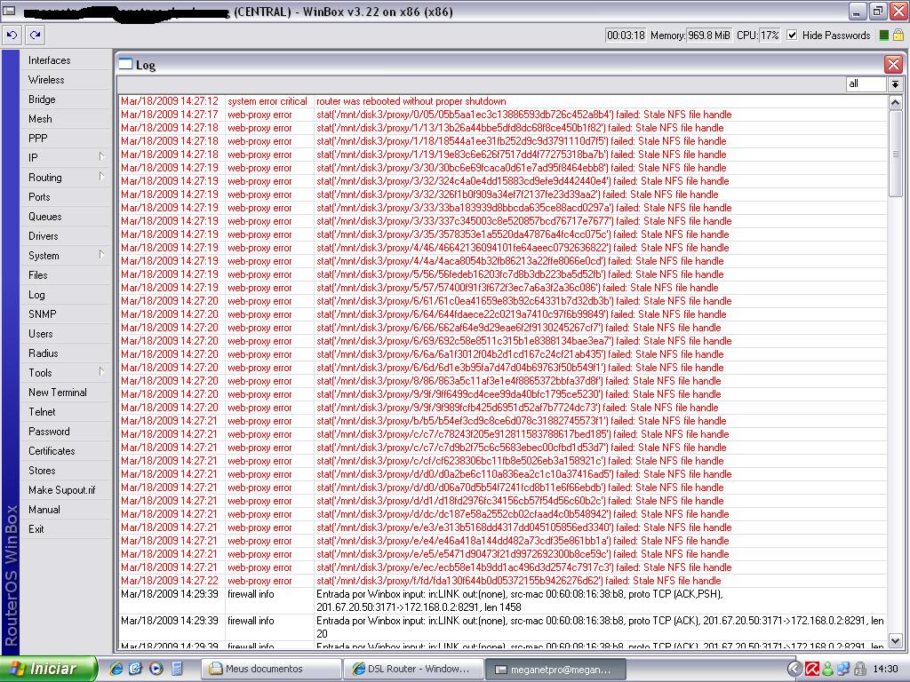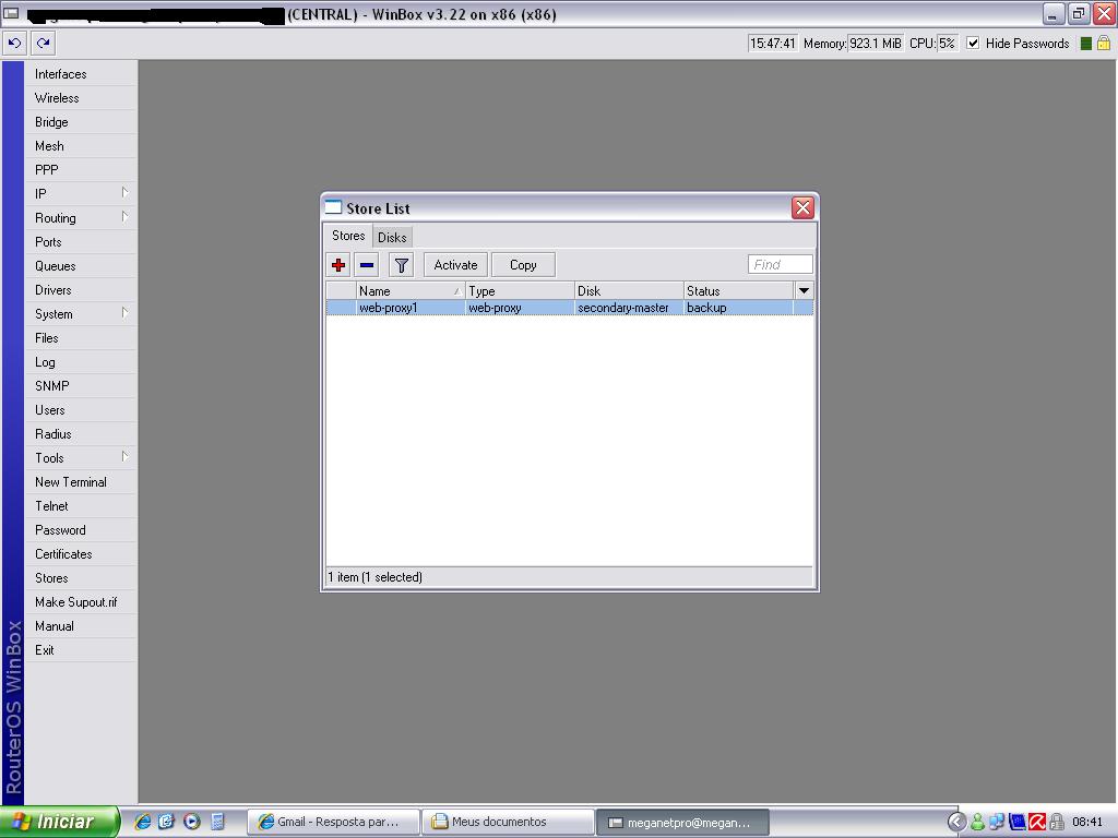 Como eu disse mal comecei a usar e travou, depois disso tirei os logs do proxy e tem 14hrs funcionando, mais em stores o hd q uso pra proxy fica como backup não ativa pois uso um CF pro MK, mais ta funcionando, segue a imagem.