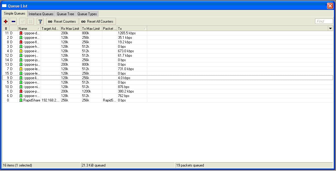 As regras de enfileiramento por sua vez possibilitam o controle do tráfego através do atraso ou descarte dos pacotes de rede, consequentemente obrigando as interfaces reenviarem a informação, atrasando a taxa de transferência.