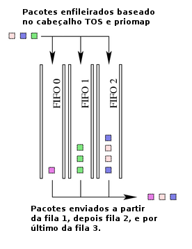 PFIFO Fast (Packet First-In First-Out Fast) – É similar a regra de enfileiramento PFIFO, esta regra utiliza prioridade de acordo com o campo TOS dos pacotes de rede. Esta classe é atribuida por padrão durante o boot para todas as interfaces de um sistema unix.