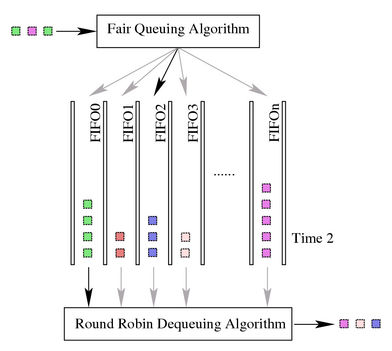 Os pacotes são classificados através de endereço de origem, porta de origem, e endereço de destino e colocados cada um em uma fila (FIFO) dedicada a esse fluxo. Esta classificação associa um codigo hash a cada enderecamento que chega, e a cada fila, fazendo com que cada tráfego seja direcionado para uma unica fila. Caso o número de tráfegos seja maior do que o número de filas, o codigo hash será repetido, fazendo com que cada fila controle um ou mais tráfegos. As filas são servidas uma por vez, por um algoritmo round-robin. É um metodo menos rigoroso do que outros, porém exige menos cálculos (Brown, 2006).