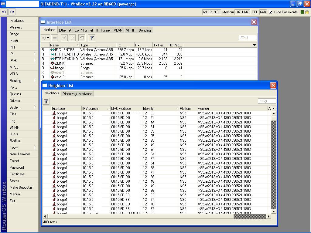 se num ta vendo 400online na foto e 6d de uptime... como vc pode afirmar que trava???... eu to passando pela pratica e a rb esta suportando. O provedor esta com 830 clientes(tudo bridge),,, se acha que se num tivesse funcionando sem panes eu iria estar tendo tempo ao menos pra postar isso aki... srrsrsrsrss afirmo que suporta todo o trafego. em bridge... filtro apenas de interfaces na bridge.