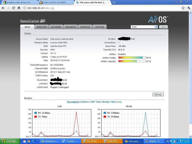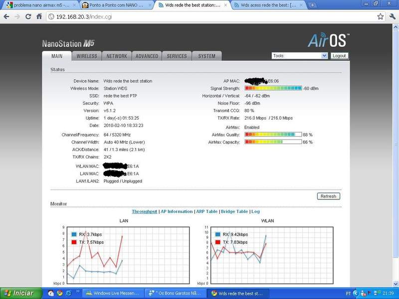 Mais por favor alguem posta as configuraçoes desses nanos M5 por que na verdade eu estou tentando atraveçar 10 megas em uma distancia de 500 metros e ele nem comunica direito, visada 99% a unica coisa q tem na frente sao ums cabos de rede eletrica aqueles que passam e torre, alguem pode postar as configuraçoes do apwds e da station wds por favor?