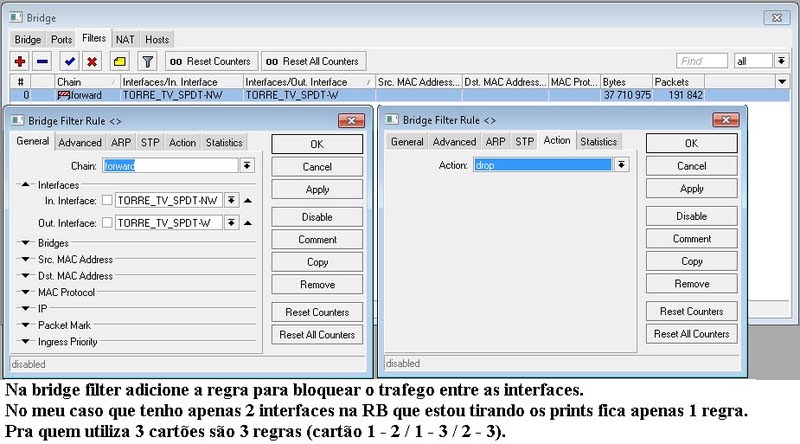 Abaixo 3 fotos mostrando como matar o broadcast em redes em bridge.