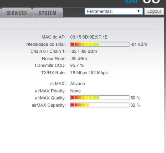 3- Configuração errada dos rádios (ainda acho que é alinhamento mas....).