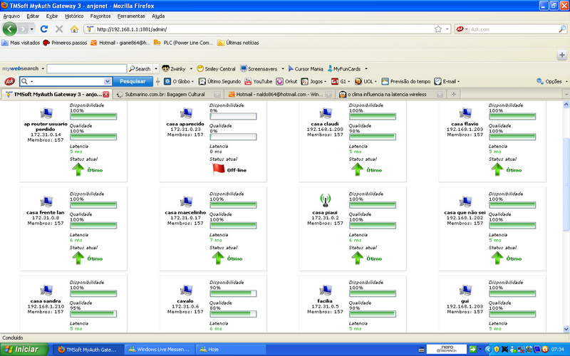 olha so isto e um print de agora de 8 clientes no radio todo mundo latencia 5 ms e esta frio ate ai tudo bem so que no calor terrivel tambem fica assim ,mas quando da o mormaço ferrou estas latencias disparam .isto acontece com 20 radios que eu monitoro .