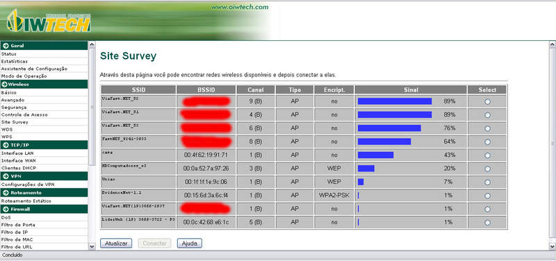 As redes com maior intensidade sao antenas na minha torre, as de menor intensidade são torres concorrentes nas costas da CPE...