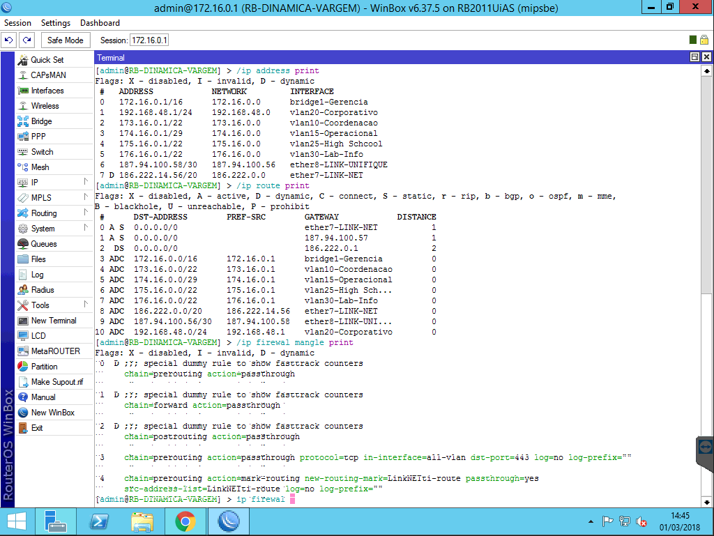 Vamos ao meu problema, administro uma estrutura previamente existente, tenho conhecimento muito raso da aplicação mikrotik.