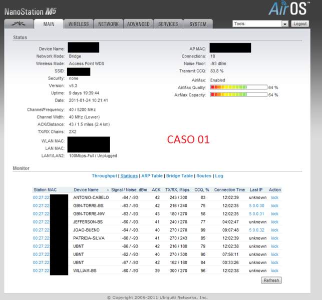 Aqui "interior de mato grosso" estamos bem na epoca das chuvas.. ai complica subir na torre, mas pretendo subir os equipes mais alto na torre e fazer um ajuste ainda mais fino no angulo das basestation.