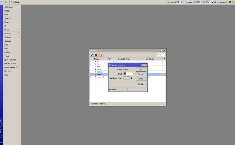 eu queria saber se mesmo com o hostpot da pra colocar aquela pagina inicial do mikrotik que tem aquelas opções (winbox, telnet, webfig etc.) mas junto com o hotspot ex. eu acesso 192.168.1.3 e ele cai nas pagina do hotspot normal, mas eu queria se acessasse por exemplo 192.168.1.3:1234 ele entrasse na pagina inicial do mikrotik.