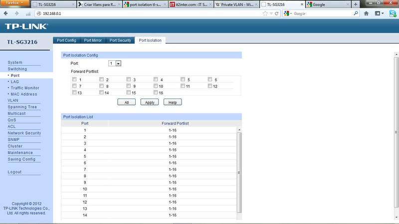cara acho que e so para seguranca agora se vai perder desempenho acho que nao mas como nunca usei o switch em questao nao posso garantir. que bom que deu certo, acho que esses switches tipo intelbras ou overtech que falam que tem vlan deve ser mentira pois ele so faz o que voce fez ai em cima que e o isolamento de porta.