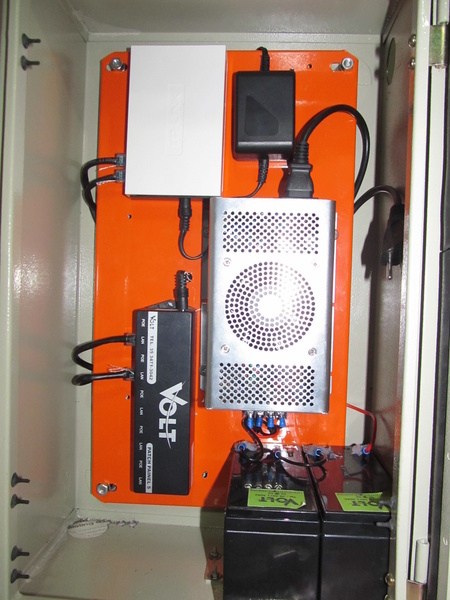 Coloco as baterias em baixo da torre, até para manutenção ser mais fácil, e levo a energia com fio paralelo, com uma boa bitola, tipo 2X2,5 mm², e alimento os equipamentos lá em cima. Assim, não há perdas no cabo de rede.