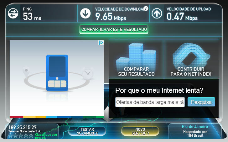 E dos 10 MB contratados, tá passando hora 7 MB +/-, hora 10 MB.