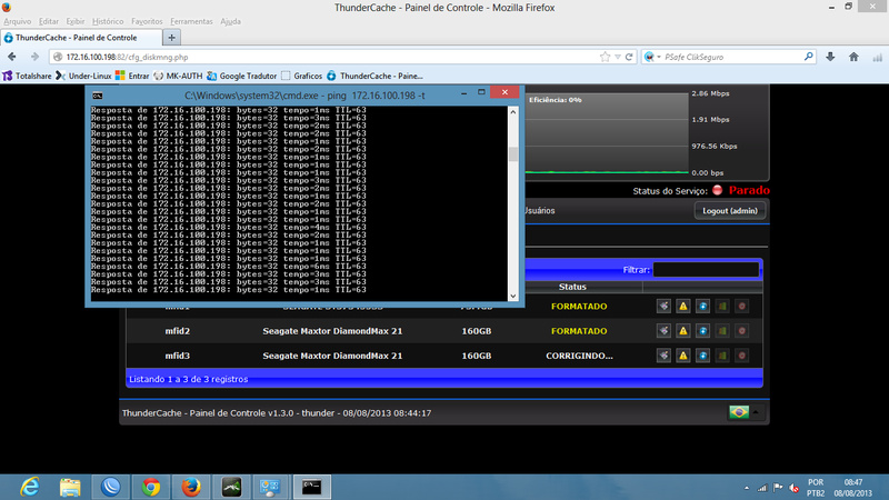 Aproveitando o tópico, depois do comando voltou a carregar o sistema, mais os disco de cache ficaram corrompido, fui pelo webamdin e parei o thunder e mandei corrigir.