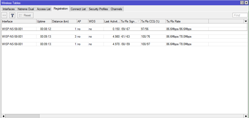 Cliente SXT (é o primeiro cliente associado no Registration, conforme primeira imagem da Torre de Transmissão, com CCQ 97/56):