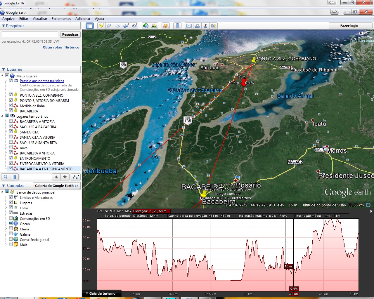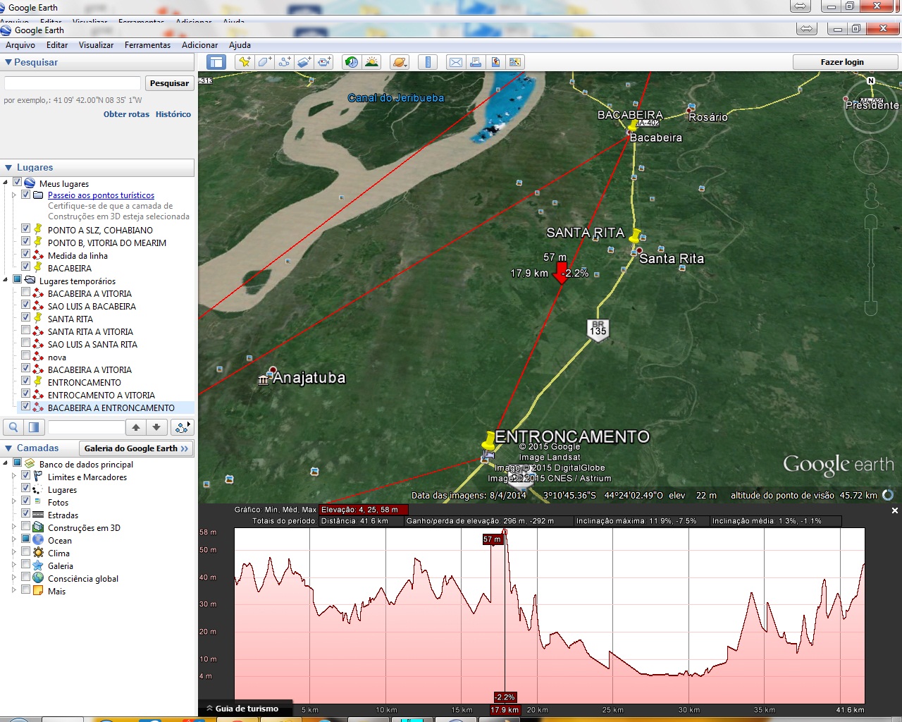 Segunda opção dividir o percurso do link em 3 enlaces, o 1° de São Luís a Bacabeira com 52km, o 2° de Bacabeira a Entroncamento com 41.6km e o 3° de Entroncamento a Vitoria com 50km. Todas as de 60 mts cada. Analizem as img por favor... oq me dizem?