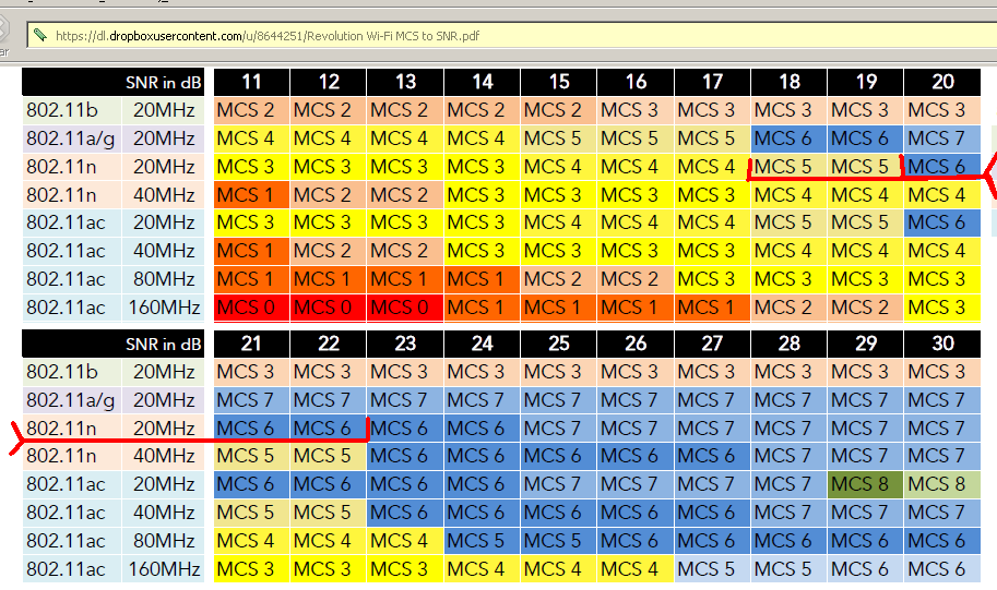 Já o pacote de dados do cliente, esse vai no esquema de modulação que você setou, é um pacote maior e num datarate maior. Digamos que está usando MCS15, o SSID é emitido em BPSK (Legível até em -95dBm), mas o MCS15 está em 64QAM, legível só bem acima de -75dBm.