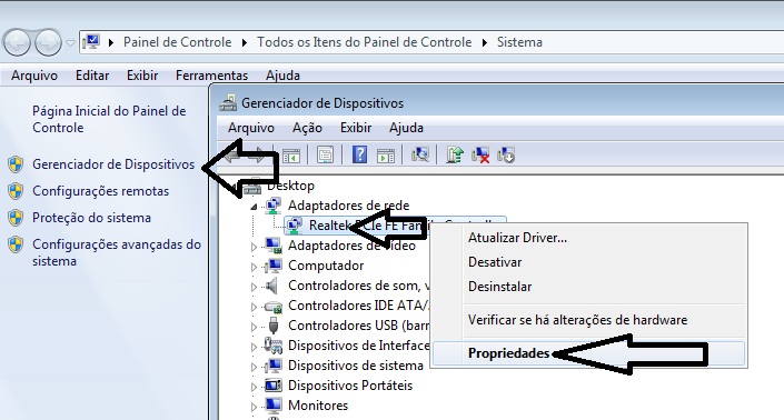 Um jeito de "forçar" o funcionamento em 100M (Quando a contraparte opera em 100M) é ir, se for Windows, no Gerenciador de Dispositivos, duplo clique na placa de rede, ou clica com o botão direito e vai em Propriedades.