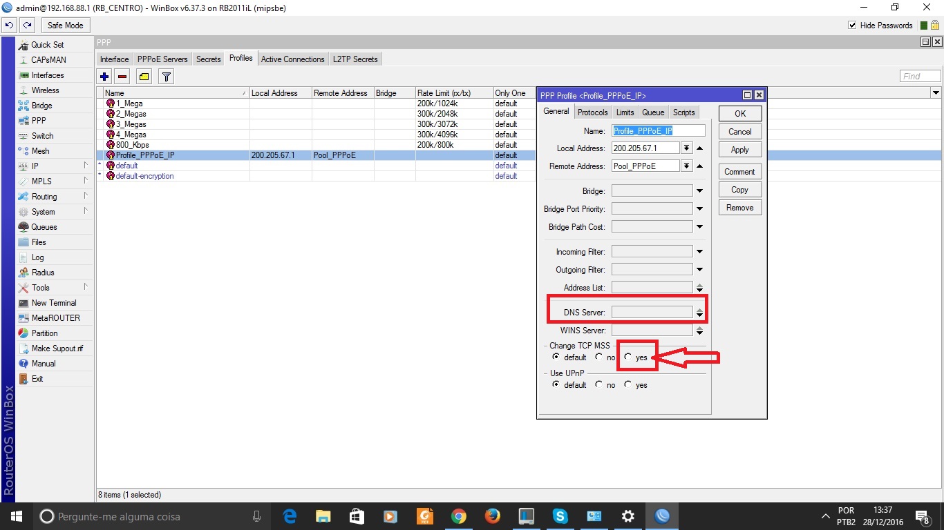 - Default definido no servidor pppoe com informações adicionais enviadas pelo Radius Server.
