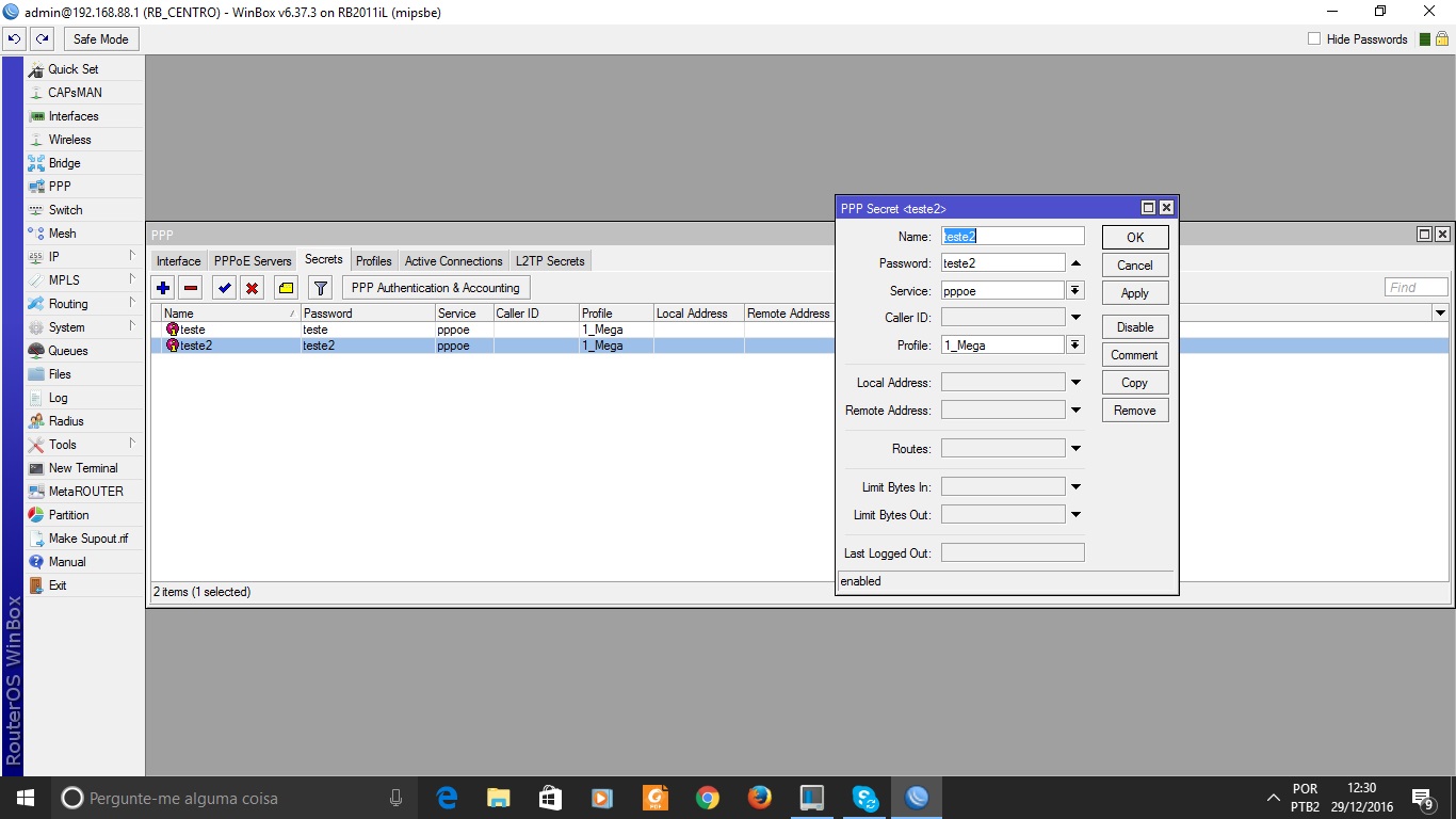 Agora se você cadastra os clientes na rb, você tem que criar profile para cada velocidade, e em Secrets o usuário e senha. Ligando a seu respectivo profile, porque se não colocar ele fica