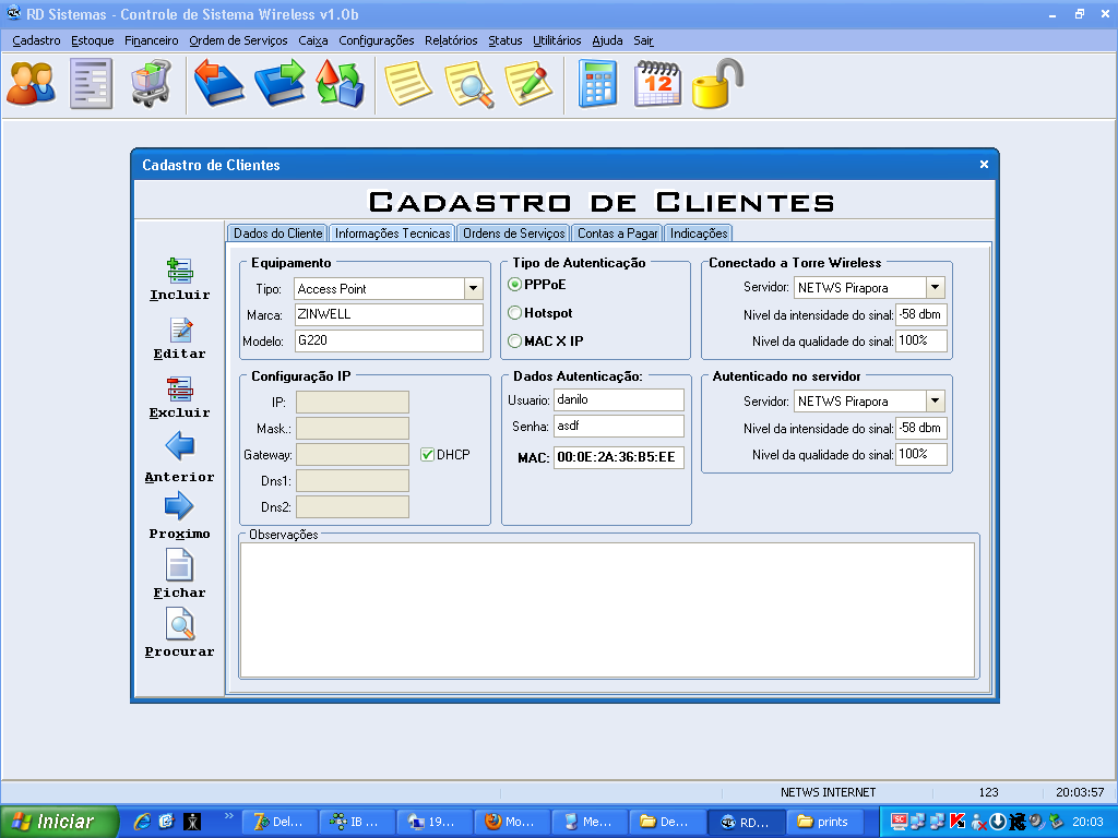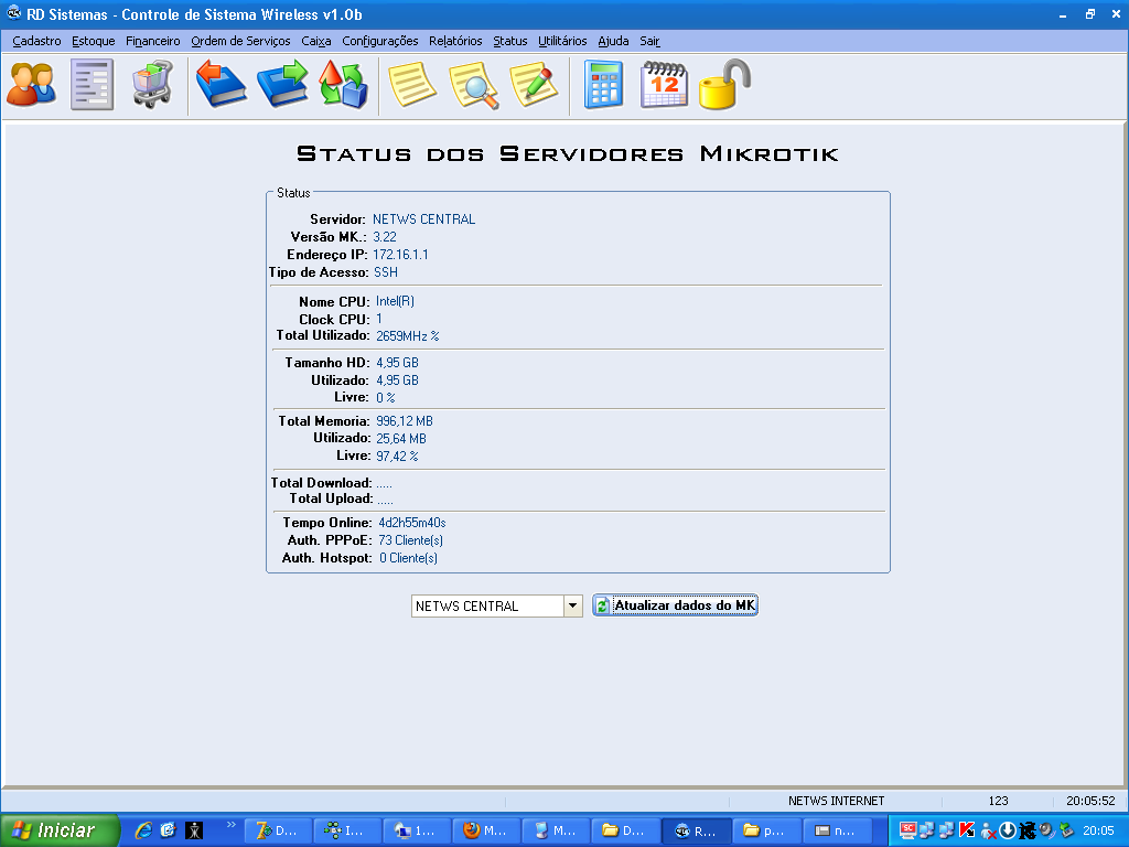 * Comunicação com o Servidor Mikrotik em tempo real.