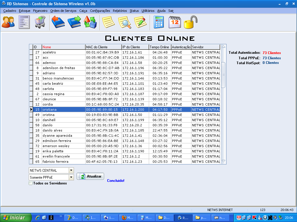 07 - Visualizar todas as vezes que o cliente conectou (Data, hora, tempo conectado, total baixado e etc);