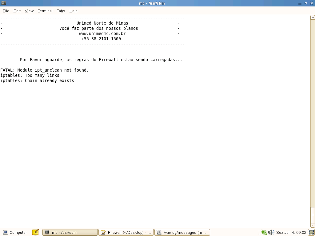Saudações galera do under, falei que voltaria hein...rsrsr...Magnun meu amigo, coloquei aquele script e adaptei com minha rede e peguei tbm um script de um firewall que tinha aqui na empresa no qual rodava um Red Hat como server firewall com iptables, então ele rodou blz, porem aparece a seguinte mensagem