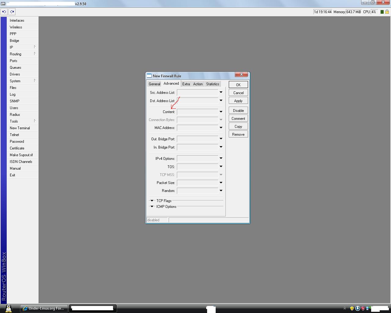 Sim, em IP/FIREWALL na guia NAT,FILTER, E MANGLE na aba advanced contém a parte content como no anexo: