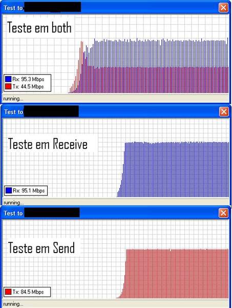 em um sentido só não passa de 90 megas, pois é limitado pela rede /100. outra coisa uma rede /100 100 incoming e 100 outgoing, não estamos falando em placas half e sim (full duplex) duplex significa dupla.