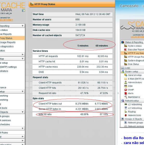 R$9.132,40 / 60 meses = R$152,21 = Cache profissional (infelismente nem todos consegue pagar isso mais ou menos 7mil no inicio e acaba ficando com mensal de no minimo por ai R$350,00) sem falar na economia real de LINK que esse cache da, tenho umas telas de picos de eficiencia logo cedo ou perto do meio dia sempre da esses picos ai Lembrando eu não uso cache full (não aconselho cache full em rede Wireless) so QoS Acelerado exemplo vendo planos de 1MB (na RB onde esta o cliente conectado ele levanta uma Queues (tudo via radius) com limiti de 1MB) | 512kbps e Link o resto e proxy se não tiver proxy o cliente fica com 512kbps Pois na venda ja esta especificado 1MB com Garantia de 50% não tem enganção e tudo bem detalhado quando esta em proxy o cliente navega e baixa ah 1MB = 128kb/s, Segue algumas telas de alguns picos.