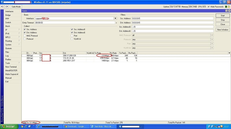 Sendo o limite máximo da banda dele o que estiver no Router2, que no caso desse cliente seria de 3 Mega.