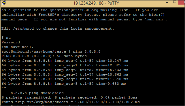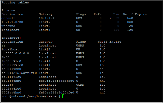 No comando acima mostra o gateway default sendo sua interface do RB que esta conectada nesta maquina Freebsd.