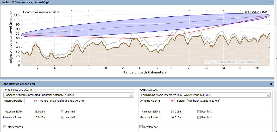 (A indicação de insistir em 30MHz primeiro é que geralmente se usa canal de 20MHz, o uso de 40MHz exige 2 (dois) canais de 20MHz limpos um do lado do outro, isso anda raro de achar hoje, é comum ter a beirada dos canais suja, com 30MHz você fica 5MHz longe da sujeira de um canal vizinho em uso, isso tudo depende de escanear (channel usage) os 2 lados do PTP pra ver o que tem pra usar, se tiver 40MHz limpo é só alegria, mas nessa torre cheia de outras antenas do lado acho que vai ser difícil, a MALDITA Airgrid tem a porcaria atrasada da polarização simples então muito usuário dela parte pra 40MHz onde uma polarização dupla a 20MHz daria o MESMO throughput, isso polui 20MHz a mais que o necessário, faz sobrar pouca coisa limpa no espectro, depender de 40 ou 80MHz hoje é complicado, um channel usage mostra um canal limpo hoje mas semana que vem ele suja, e contra isso tem pouco o que fazer, radome ajuda muito mas não resolve tudo, num PTP intermediário um radome é superfluo, mas em área urbana é fundamental se precisar usar canal mais largo que 20MHz (E vai precisar se quer 100M))